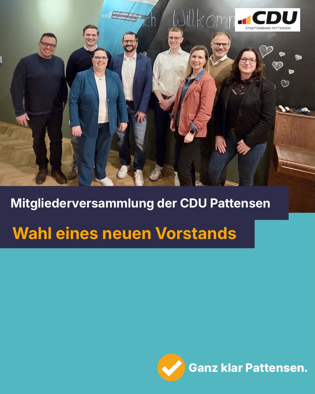 mehrCDU Pattensen stellt Kandidaten für die Regionsversammlung Hannover auf 🗳️ Am Samstag haben wir als CDU Pattensen unsere Kandidatinnen und Kandidaten für die Regionsversammlung Hannover aufgestellt. Unsere bisherige Regionsabgeordnete Stefanie Behrends tritt nicht erneut zur Wahl an, da sie bei der Kommunalwahl am 13. September als Bürgermeisterin für Pattensen kandidiert 🏛️💪 Für ihr großes Engagement und ihre erfolgreiche Arbeit in der Regionsversammlung sagen wir herzlich Danke 💐 Als ihr Nachfolger möchte Matthias Wiesner, langjähriges Mitglied im Rat der Stadt Pattensen, antreten 🤝 Er bringt beste Voraussetzungen für ein Mandat in der Regionsversammlung mit und genießt unser volles Vertrauen. Matthias Wiesner wurde als Spitzenkandidat ebenso wie unsere weiteren Kandidaten Daniela Wermuth und Dirk-Hermann Frank einstimmig gewählt ✅ Ein starkes Signal für die Geschlossenheit und den Teamgeist der CDU Pattensen auf dem Weg zur Kommunalwahl 💛 Im März stellen wir gemeinsam mit den CDU-Verbänden aus Pattensen, Laatzen und Sehnde die Gesamtliste für den Wahlkreis auf 📋 #cdupattensen #Pattensen #Regionsversammlung #Kommunalwahl2026